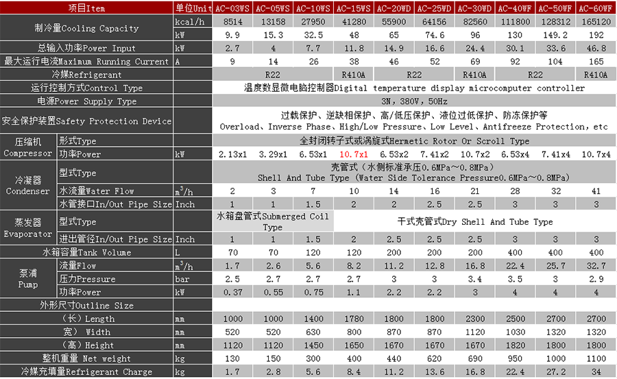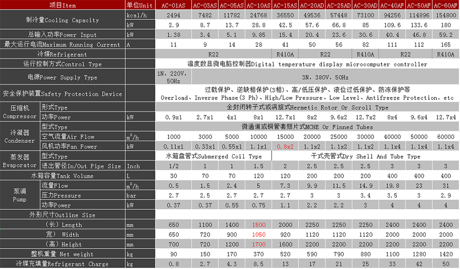 ◆ 冷媒可选R22、R407C、R404A、R134A、R410A等
