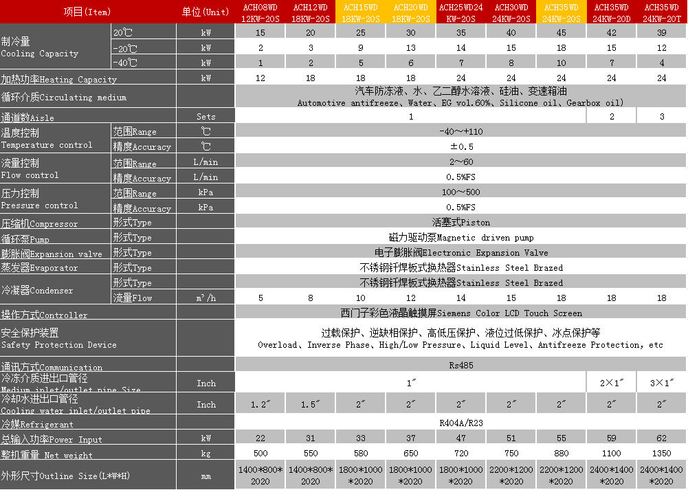 高低温液体智能温控设备(汽车部件测试(shì)) -技术参数表: